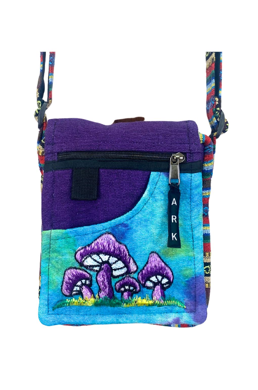 Elevate your everyday essentials with the Alice Small Crossbody Bag, crafted from 100% cotton. Featuring a vibrant embroidered mushroom motif on the front flap, this compact bag offers practical storage and bohemian charm for festivals, travel, or daily wear.