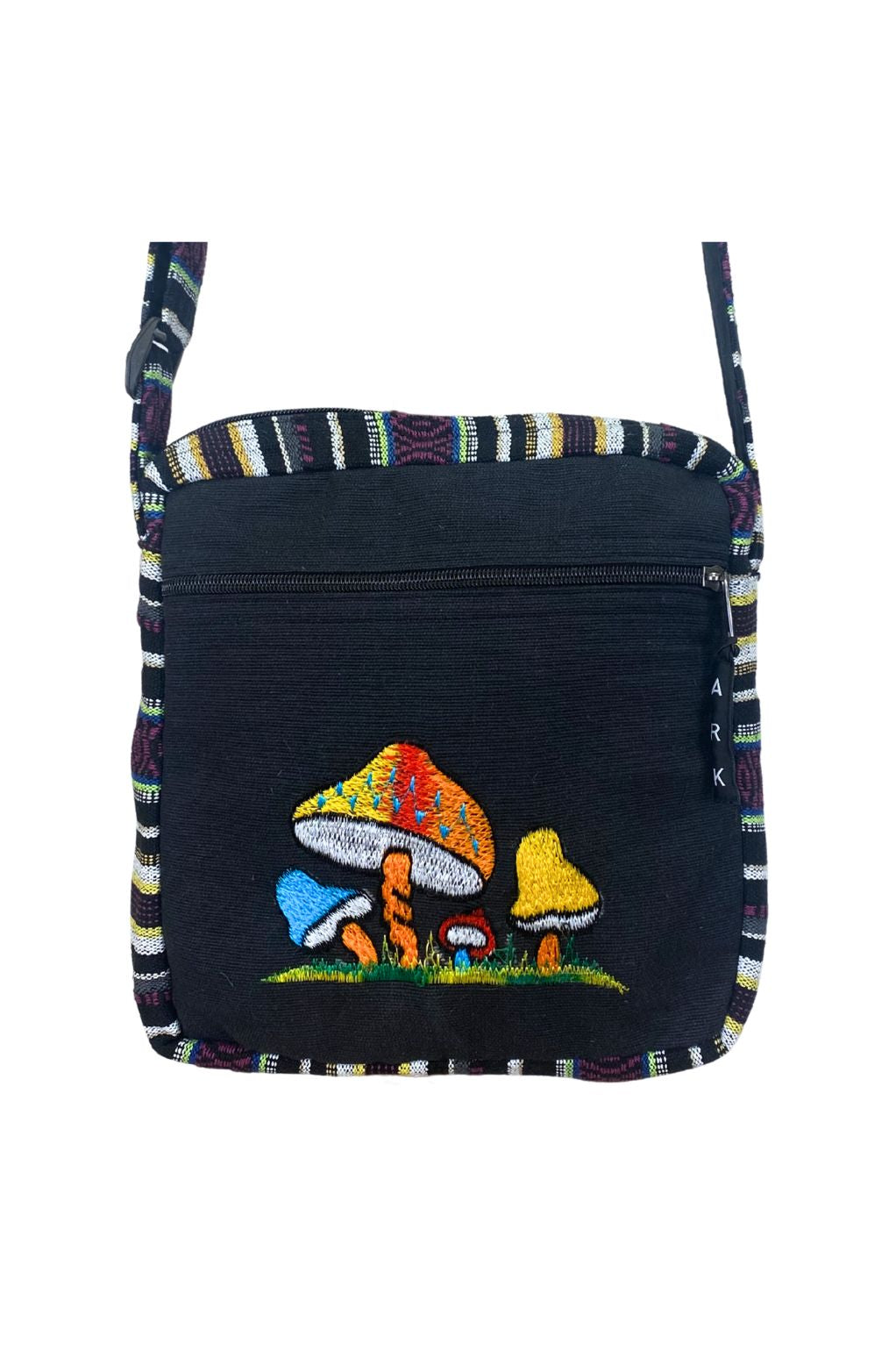 The Alice Solid Crossbody Bag combines everyday practicality with bohemian charm. Handmade in Nepal from 100% cotton, it features a beautifully embroidered mushroom motif that adds whimsical style to your look. With a secure zippered main compartment and an adjustable crossbody strap, this eco-friendly bag keeps your essentials safe and accessible wherever you go.