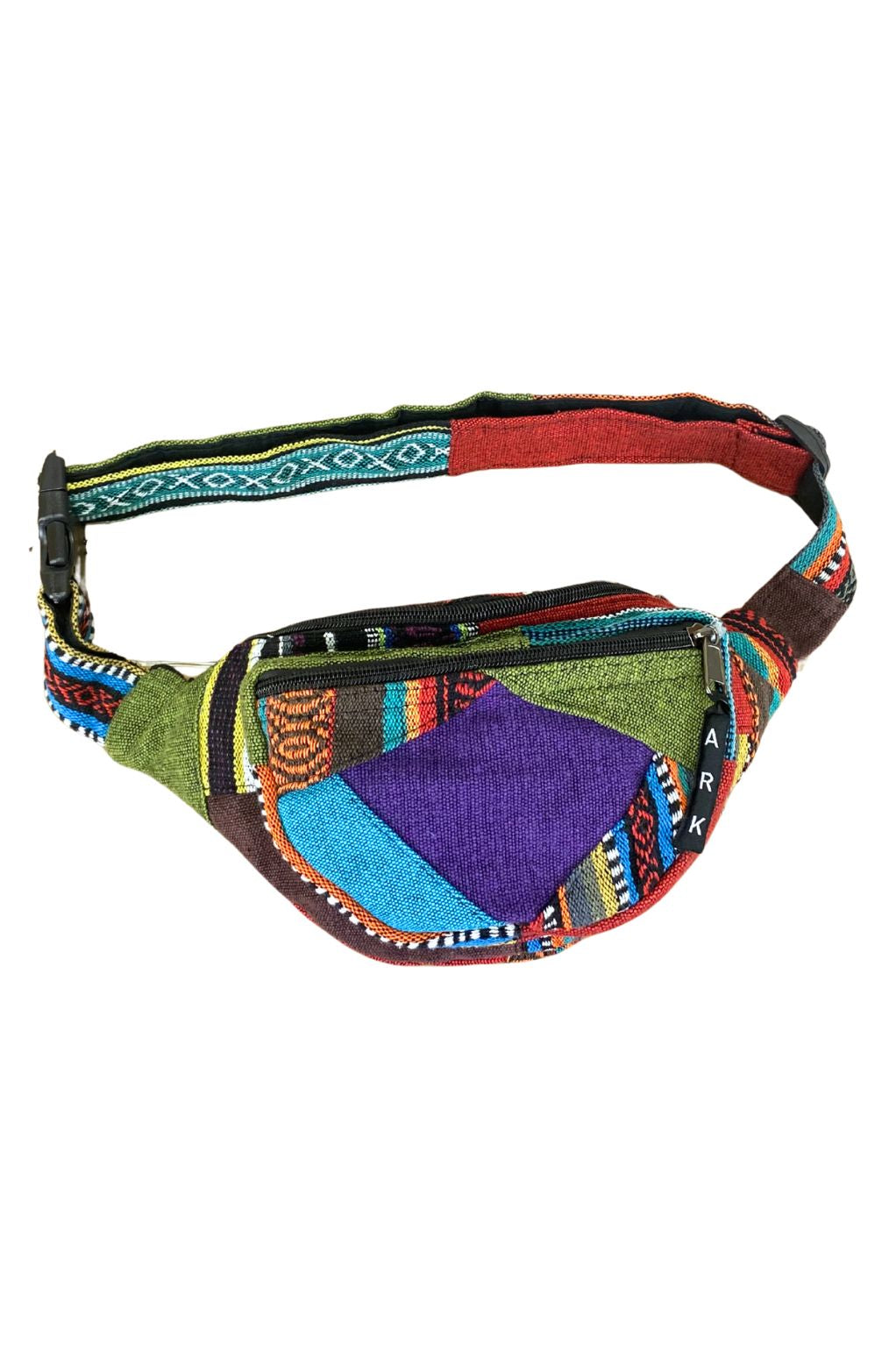 Versatile fair-trade hip pack handcrafted in Nepal from 100% cotton. Compact yet spacious with secure zippered closure, perfect for hands-free convenience and conscious, ethical style. This lightweight, durable hip pack is designed with practical dimensions (approx. 13" wide x 6" high) to hold your essentials securely while on the go.