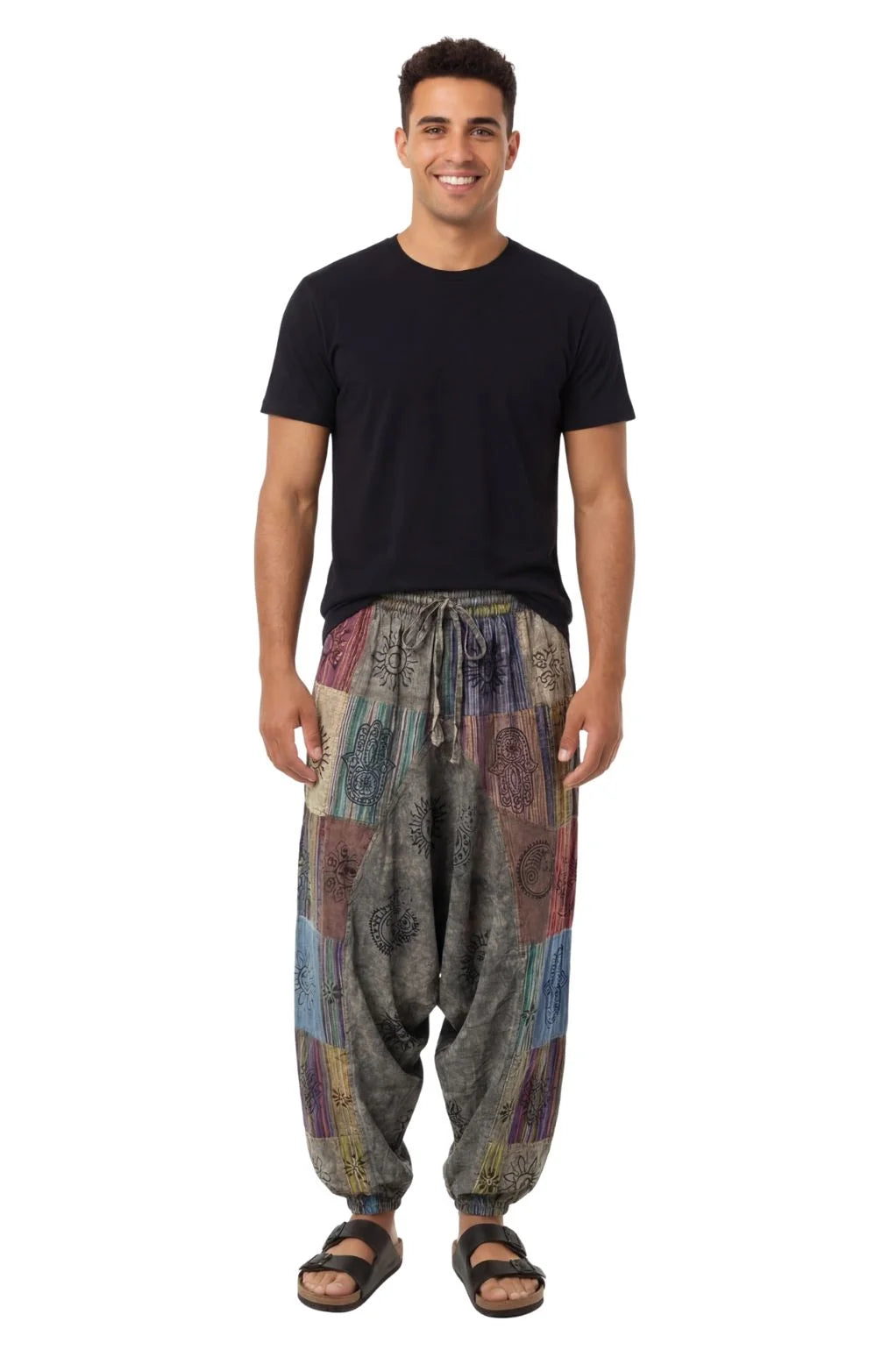 The Enzo Harem Pants offer relaxed comfort with bold, artisanal style. Made from soft, breathable cotton, these one-size harem pants feature a roomy, draped silhouette designed for ease of movement and everyday wear.