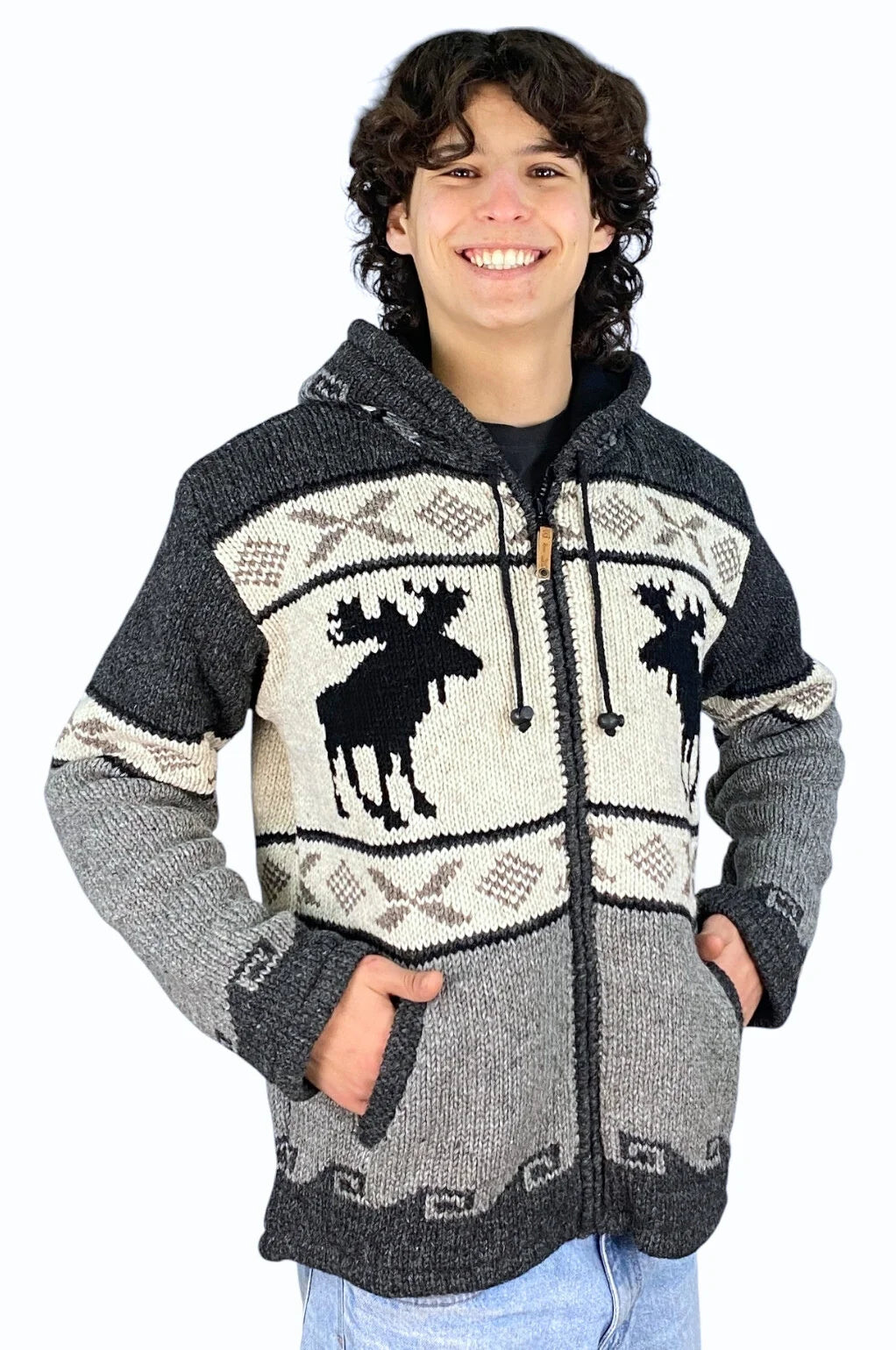 Moose Cardigan – 100% Wool, Fleece-Lined, Fair Trade Zip Sweater