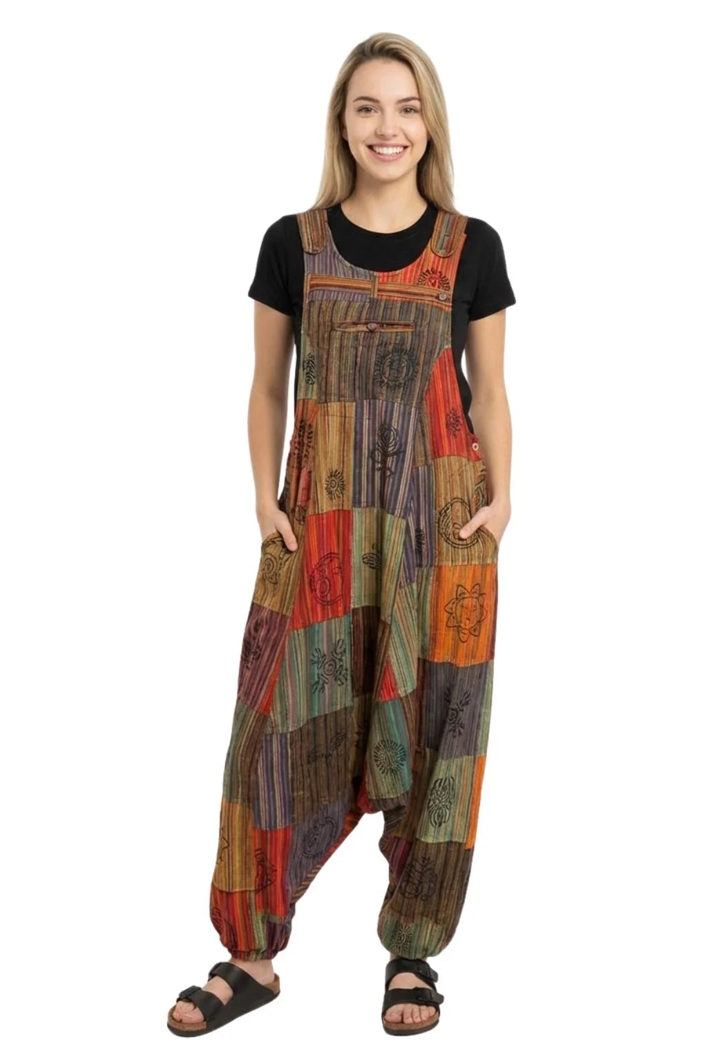 These fair trade cotton overalls combine vibrant patchwork, all-day comfort, and artisan-made charm—perfect for layering, lounging, or embracing your free-spirited boho vibe.
