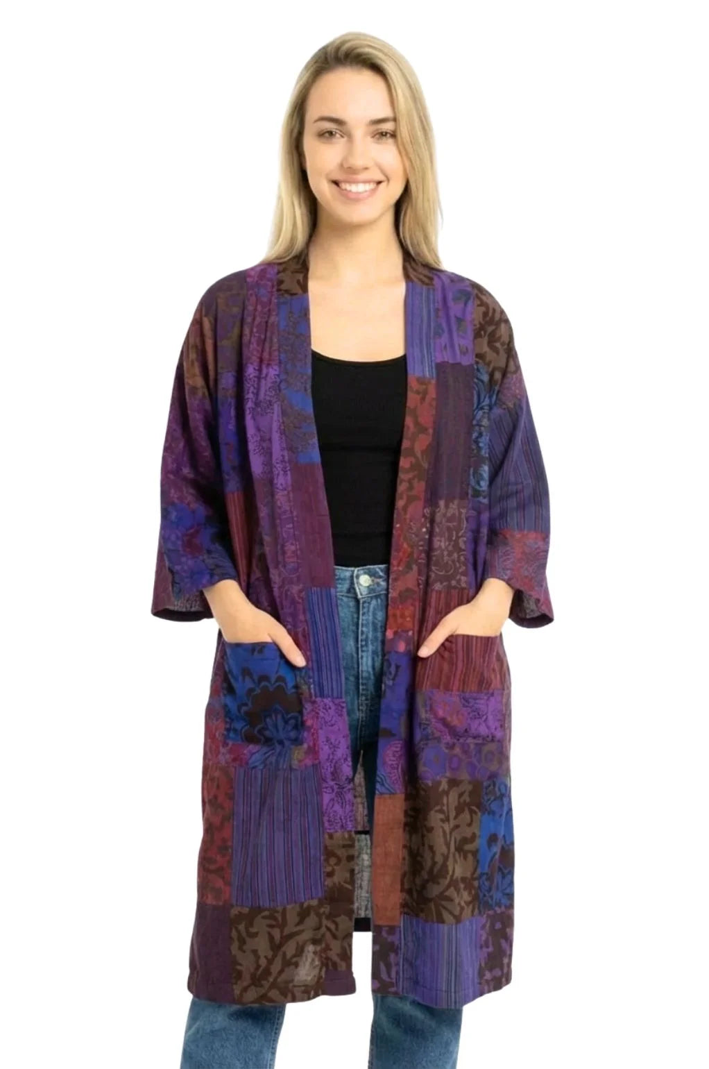 Wrap yourself in the soulful beauty of the Picaza Kimono—an ethically made, one-size cotton kimono crafted from...
