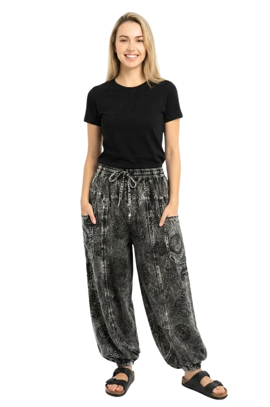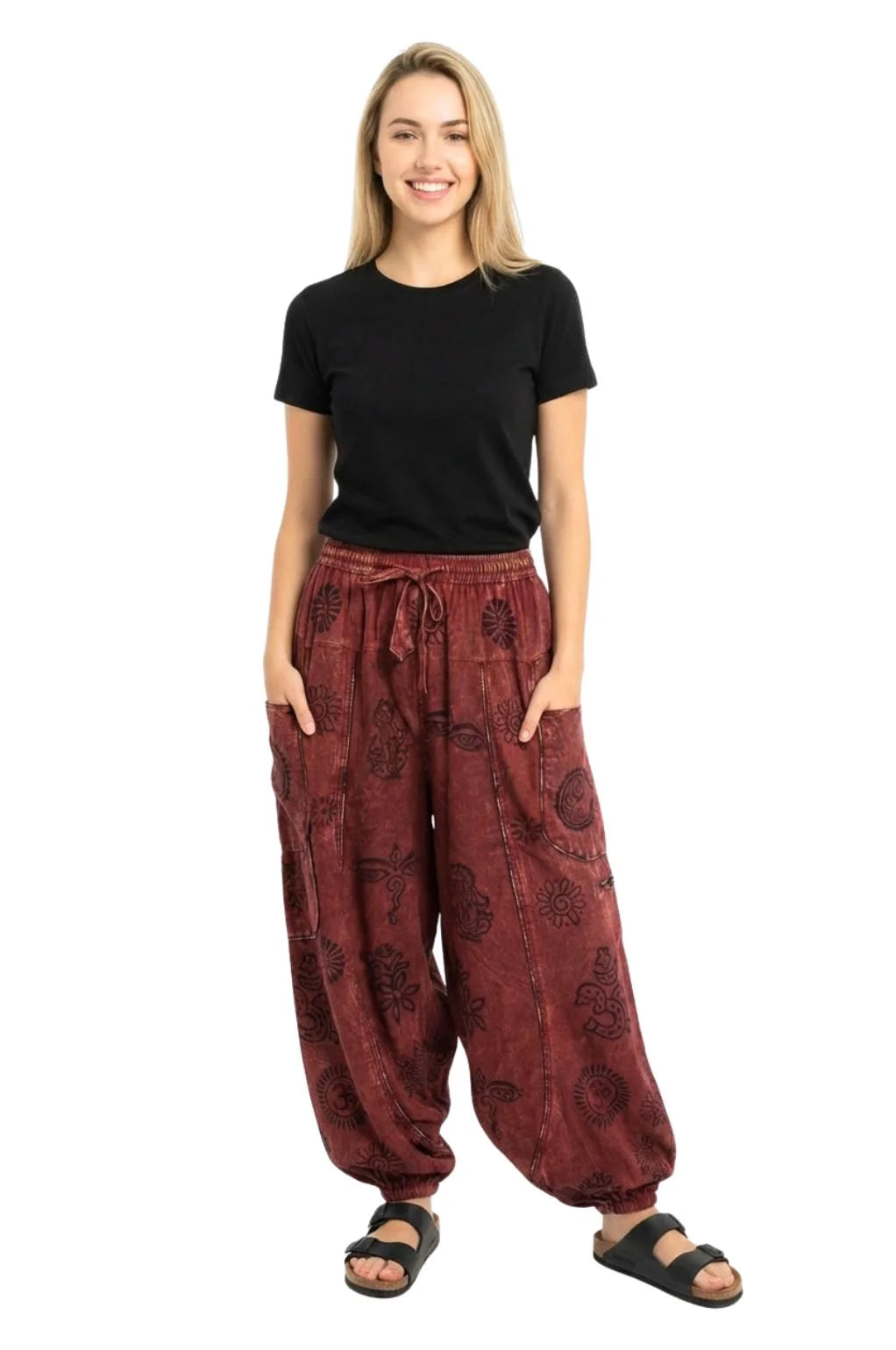 Feel free and stylish in the Shasta Pants—lightweight cotton with hand-printed Nepalese motifs, a relaxed fit, and elastic waist. Ethically handmade, perfect for yoga, travel, and everyday boho vibes.