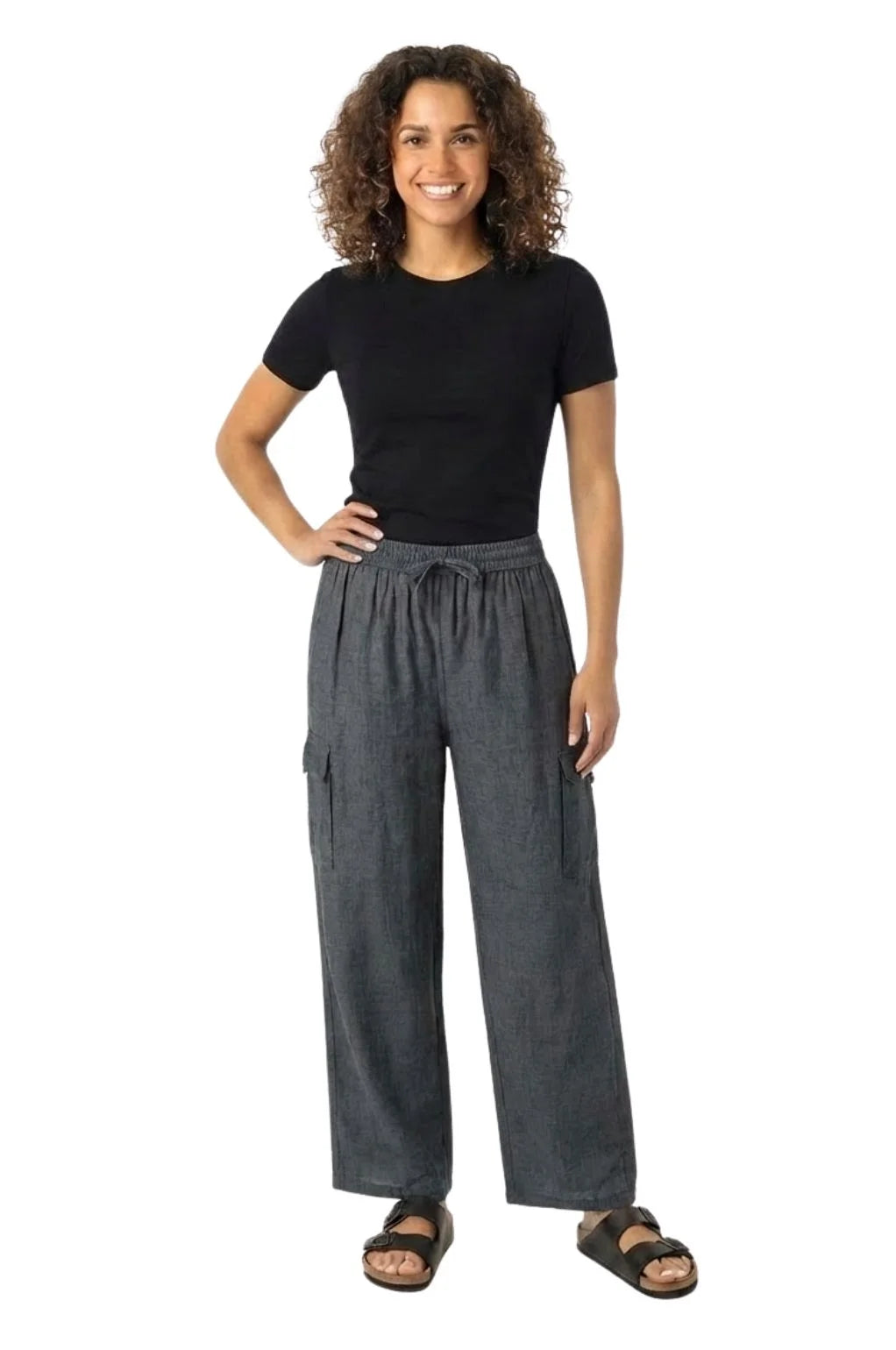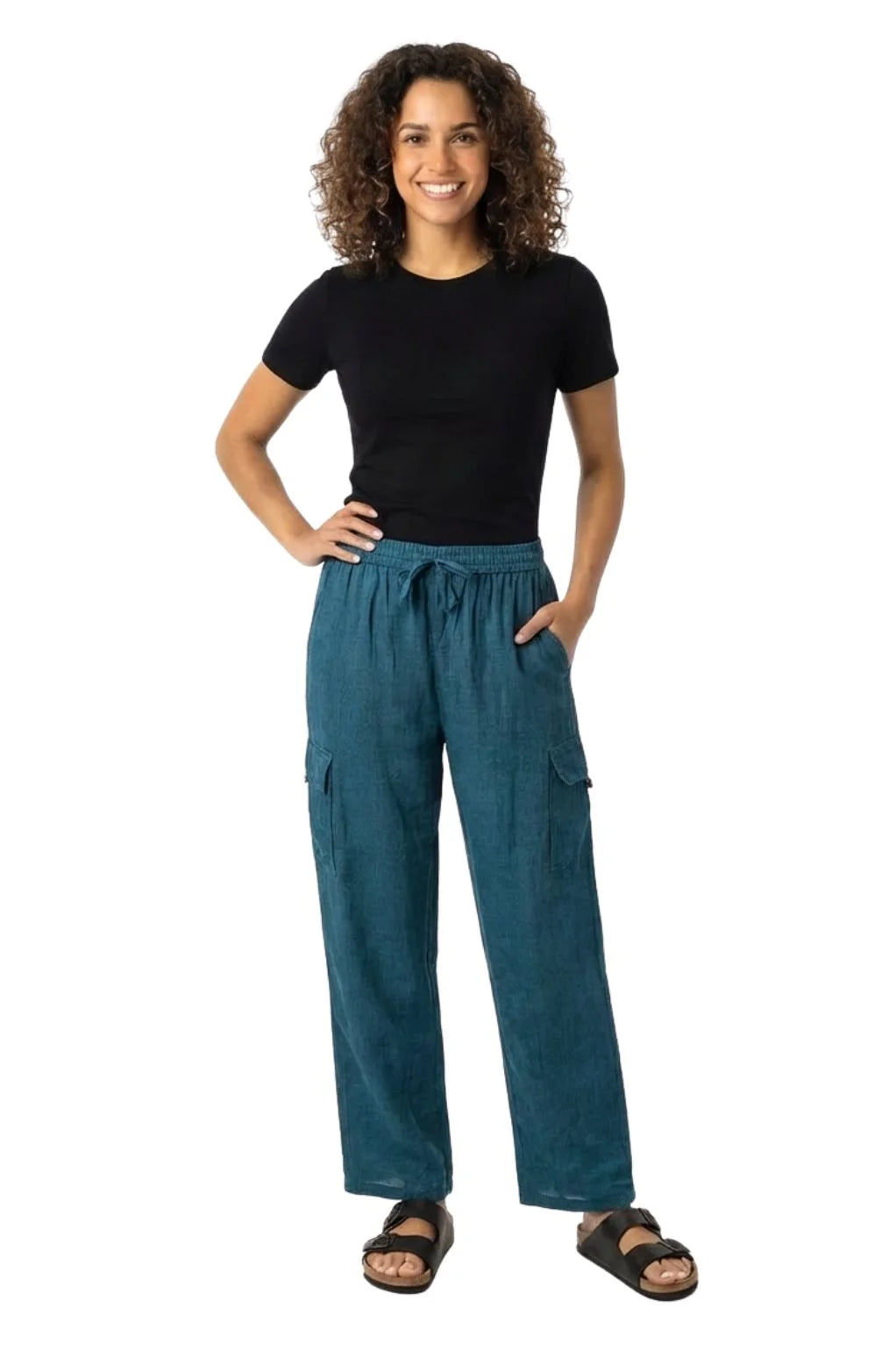 Crafted under fair trade principles, these relaxed-fit pants feature spacious side and cargo-style leg pockets for practicality. The lightweight fabric keeps you cool, while the elastic drawstring waist offers a flexible fit.
