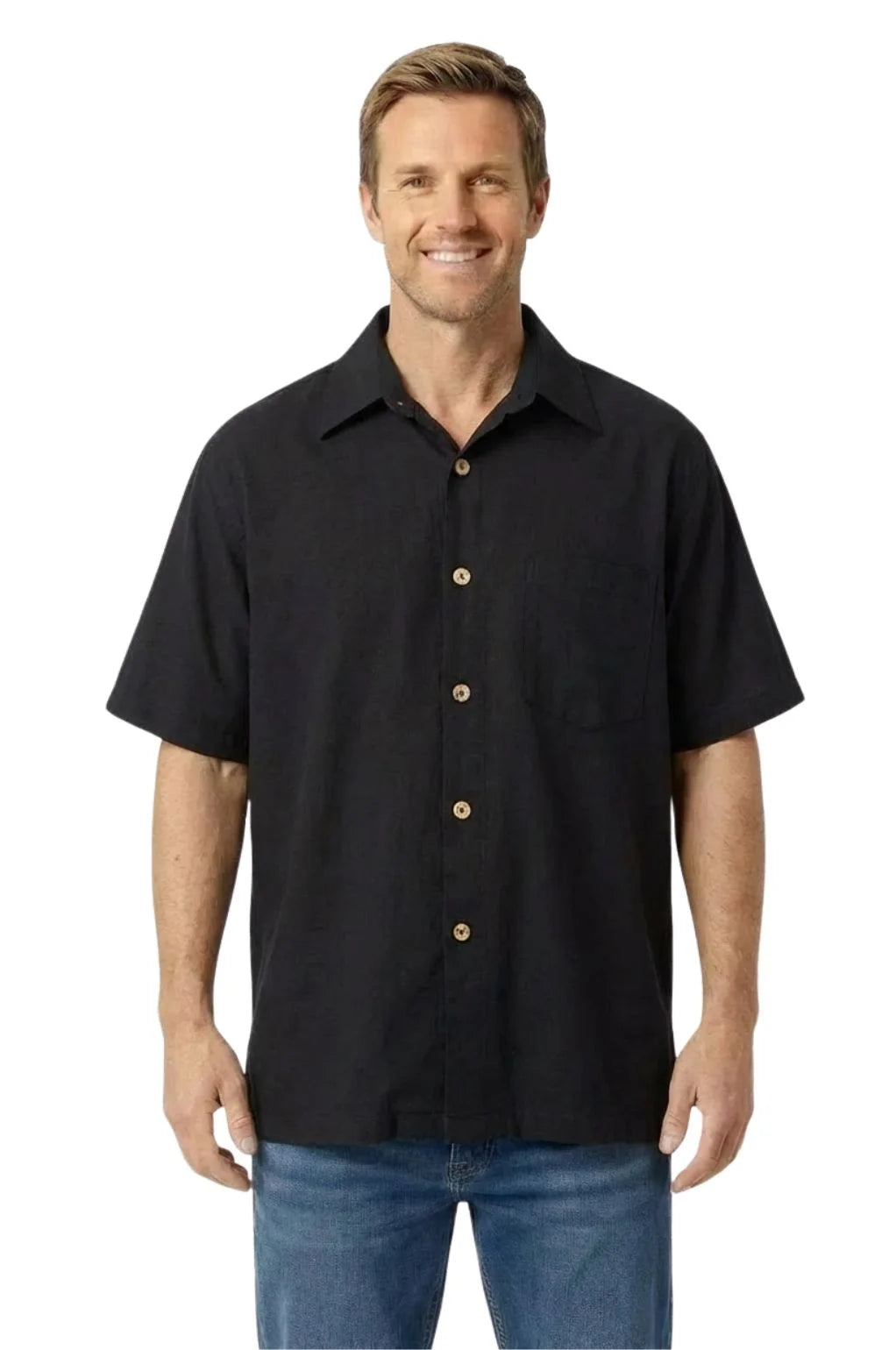 A timeless wardrobe essential, the Solid Button Shirt is a breathable, fair-trade cotton button-up handcrafted in Nepal. Featuring a structured collar, wooden buttons, and a relaxed fit, this short-sleeve shirt balances style with ease and comfort.